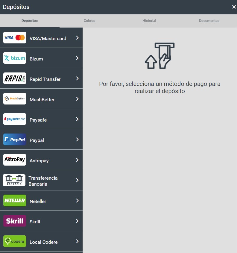 Si bien no hay demasiadas formas de retirada, sí disponemos de una grandísima cantidad de métodos de ingreso. Los métodos de retiro pueden variar en función del método que hayamos utilizado para depositar inicialmente.